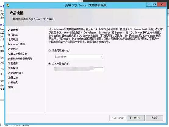 第一个节点( Q-SQL01 )点击新的群集安装并输入 License :