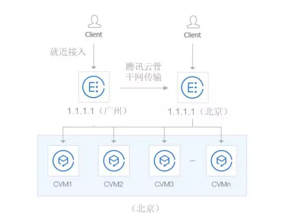 如果客户的流量能走公有云厂商服务节点之间的骨干网来绕开公网拥堵,同时通过控制IP发布对地理距离较远的客户端请求就近接收,用户能得到很大收益: