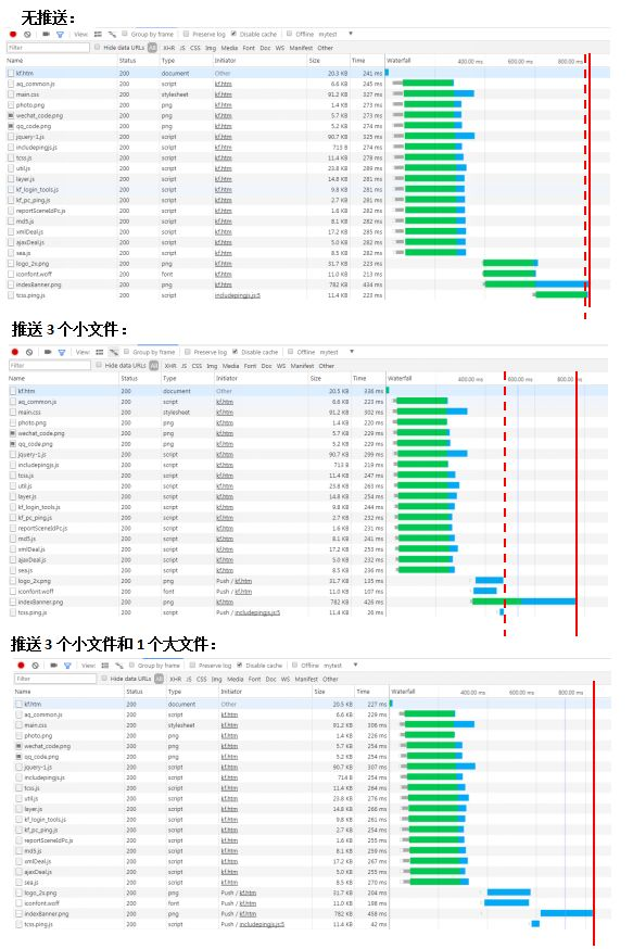 Server Push相对应没有Server Push的具体提升如下: