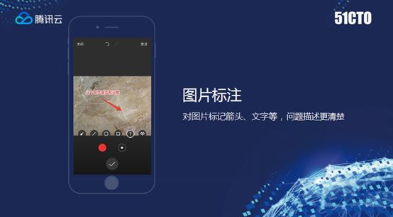 图片标注,这也是某些行业里面用得到的,举个例子,有家著名的物业管理公司,他员工要去巡查社区的时候发现问题,要在系统里反馈,需要指出来哪个砖块在什么地方有问题,可以直接标注发送,包括保险车险的现场勘查,或者其他领域都可以用到。