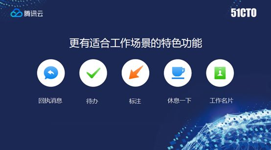 所以既然是集成了使用体验,所以微信中熟悉的沟通方式也都集成下来,像语音留言、电话、邮箱、红包、视频,当然要想把工作做好,不仅是微信聊天就可以,我们还要加入一些新的功能,像回执消息、待办、标注、休息一下、工作名片,这些工具没有完全列举,能够帮助用户在企业微信生态中更方便做工作的交流。说到工作中的交流,大家不可避免在工作中要用微信去工作,可能有很多办公群,我们会发现群多了也很复杂。比如刚才我们现场加群也体验了,无数人在进到一个群以后,不知道对方是谁,对方的身份是什么,叫什么名字,是哪家公司,所以你进到一个工作群里拉到一个小组里说工作的事情、项目的事情的时候不知道对方是领导,同事还是客户。另外一个问题,如果一个工作群组,中间发生有同事的调任和离职,这个群应该怎么办?会发现你这个群或者是要重新另外拉一个群,或者说离职的同事不好意思该说再见了。时间久了你可能会发现有很多群不用了。还有就是你们在从事一些客户项目或者营销活动中,会发现营销人员很多人用微信加客户,这些销售加客户之后,如果销售离职,那对这个企业来说,这些客户就流失了,变成了未知的客户。所以企业微信要解决这些问题。