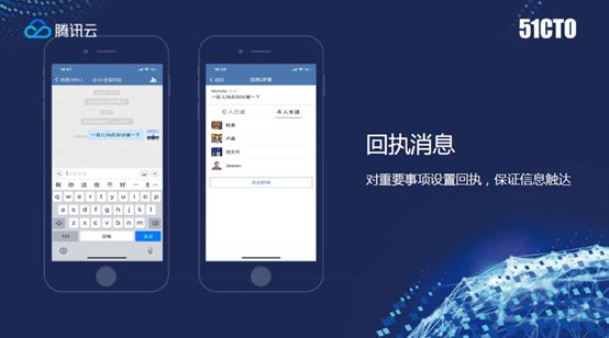 回执消息网上会看到比较多讨论,也有跟其他竞争品的一些比较,对于企业微信里面聊工作,如果开启这个功能,你可以知道发的消息对方到底有没有看到,发给群组的时候几个人中谁读了谁没读,还可以再做提醒。
