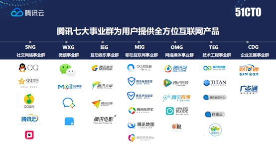 讲企业微信之前,大概看一下腾讯现在的架构,分七个大事业部,能看到上面很多熟悉的或者不熟悉的logo,大部分都是我们互联网C端个人用户使用的一些产品。这里面有一两个应用一定是大家都在用,每人手机上面都会装的,比如微信,我相信微信更多一些,而且前面提到微信在每个人手机上消耗最多的电量。腾讯现在做转型,向To B转型对企业做服务,这里面有两部分在To B转型中是先行军的产品,一个我所在的企业微信,另外一个是腾讯云,我们两个伙伴在一起,是腾讯云组织中现在做To B转型的先锋部队。