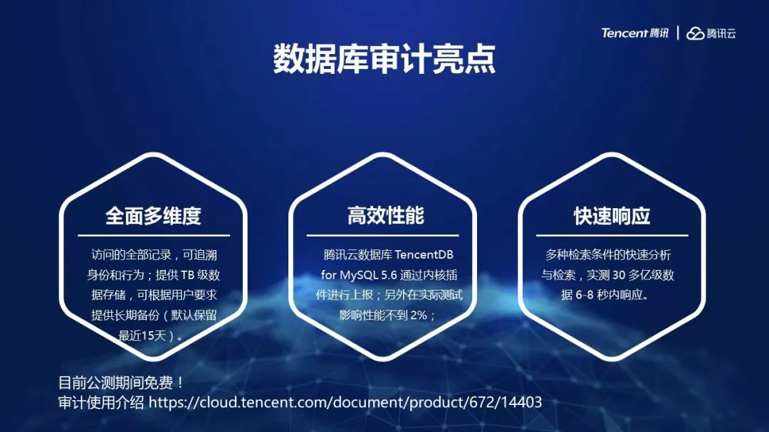 数据库审计是腾讯云为了解决行业客户遇到的诸如金融审计需求,以及实际运行中遇到的安全防护,SQL 延迟性能问题等多种综合需求而提供的产品。
