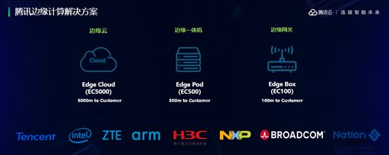 在这里我也很高兴的告诉大家,我们和很多的合作伙伴正在开展边缘计算合作,一起努力推进腾讯边缘计算解决方案的成熟。这张图就是我们边缘计算解决方案的全场景部署示意,很多人都在谈边缘计算,边缘到底在哪?我刚才说了我们三种解决方案是针对不同边缘场景构建的,我们的数据中心,我们在全国已经部署很多,包括海外已经部署了很多。下一步是边缘云的建设,将会逐渐部署至更靠近用户的边缘。再往下靠近用户的层面,我们会部署我们的edge box和edge Pod一体机解决方案,满足不同的用户需求。