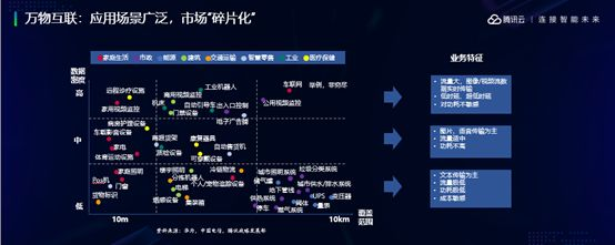今天的主题是从万物互联到万物智联,业界都在讲万物互联,万物互联有什么样的特征,这些是我们之前拿到的一些数据,可以看到不同的行业里面,物联网应用碎片化非常明显,物联网应用在不同的行业里面,对我们整个网络的要求,业务的特征,包括我们连接的技术要求都不同。同时我们也可以看出当前万物互联的连接规模已经非常的巨大、应用的范围也已经非常广,万物互联正处于一个蓬勃发展的上升期。
