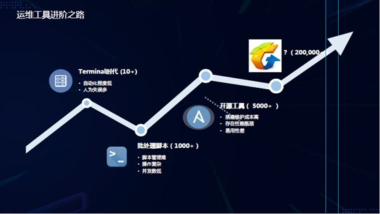 首先面向运维这块,首先我们提出一个词叫工具文化,工具文化的概念其实是谷歌提出来的,工具文化用一句话来讲,能用工具替代人的地方,直接用工具做,如果替代不了,直接用工具辅助人,这个概念非常好,就是解放人,但是忽略了一点,工具文化这个工具本身还是要靠人,同时包括这个工具未来的维护,也是非常大的事情。我们在运维自己业务的同时,你还要运维这些工具,这个可能是不能接受的。