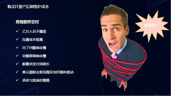 他们在买的过程当中,在2B这块有甲方和乙方的概念,甲方和乙方前期在做需求调研、做POC的过程中,乙方说我可以做,但实际上在中标之后真正实施的时候,乙方说能不能换种方式,像这种对于企业运维长期的发展是很不利的。