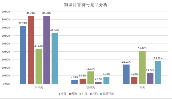 通过上述方法,我们选定了几个业界知名的知识问答产品进行评测,包括小爱,天猫,小度,数眼科技等,选定的评测领域为人物知识问答领域,评测的指标采用的是答案相关性(人工评估问答产品的回复与问题的相关性)。