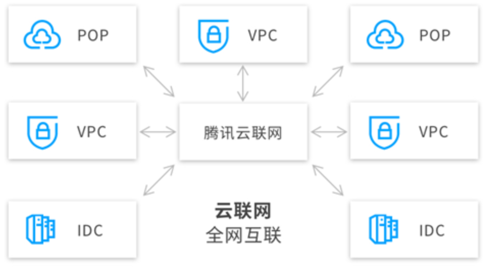 云联网(Cloud Connect Network,CCN)为用户提供云上不同 VPC间、VPC 与本地数据中心间(IDC)内网互联的服务。具备全网多点互联、路由自学习、链路选优及故障快速收敛等能力。