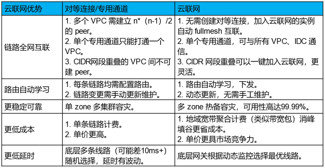 多 AZ(可用区)网关集群容灾,可用性比对等连接更高;