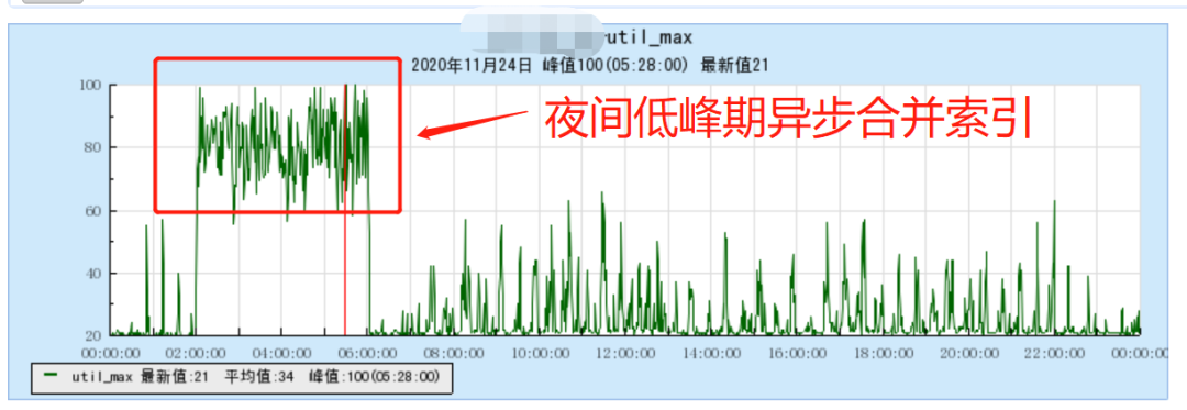 Hermes 本身会不断的对小的索引进行合并,降低索引文件的个数;而在夜间低峰期,我们也会对历史的分区数据进行一次较大的合并粒度,从而尽可能的提高整个系统的查询效率。微信支付业务的合并时间点选取的是凌晨 2~6 点,避开了凌晨 0~1 点的除夕红包高峰。