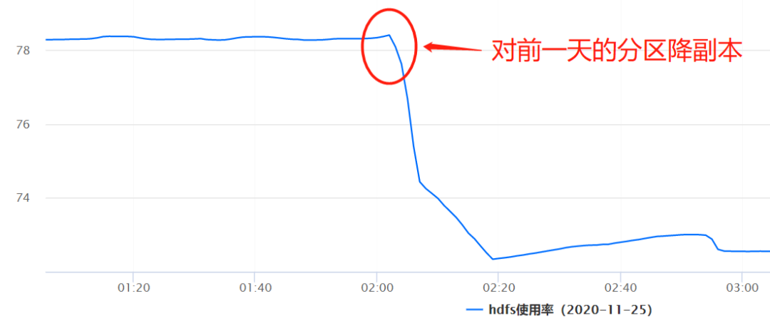 为了尽可能的降低业务的存储成本,在同业务协商沟通之后,了解到一般三天之前的日志的查询需求很低,对于日志的稳定性可以降低一些,因此 Hermes 运维侧直接对三天前的数据进行例行降副本操作,从而使得整个存储的成本直接降低 70% 以上,整个降副本操作对上层计算层和业务层都是透明的,业务对此没有任何感知。
