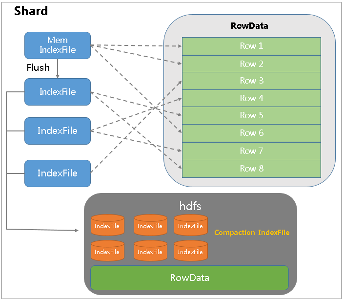 这种高效的写入方式带来的一个问题就是:随着数据的不断刷写,会产生大量的小的索引,从而对查询和 HDFS 存储造成较大的压力。
