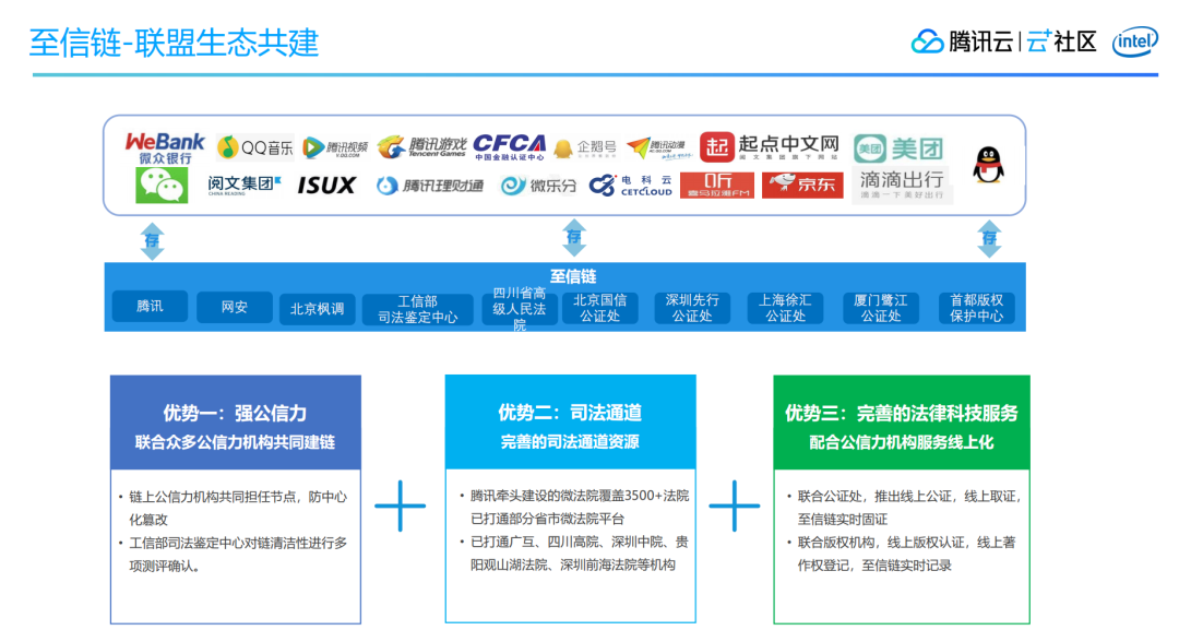 另外我们也跟司法端进行打通,至信链的节点会部署到一些法院,比如四川高院、前海法院等。