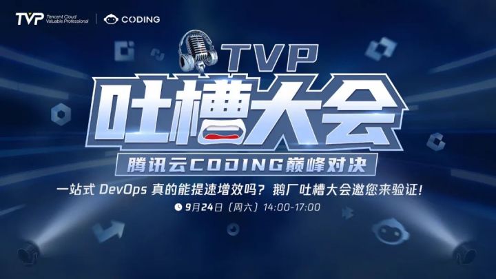 当 7 位业界顶尖大咖与 CODING 产品掌舵人现场过招,会是针锋相对,还是谈笑风生?当腾讯云 CODING 团队面对犀利吐槽,会是措手不及,还是见招拆招?9 月 24 日,CODING DevOps 专题 TVP 吐槽大会火爆开启,一同见证领域大咖巅峰对决!