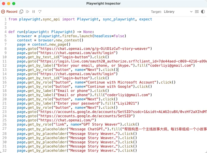 稍后我们在浏览器上打开自定义 GPTs 的网址、输入 Prompt、获取查询结果,这些操作都可以由 playwright 代替我们实现。本地程序的自动化是借由 playwright 实现的。