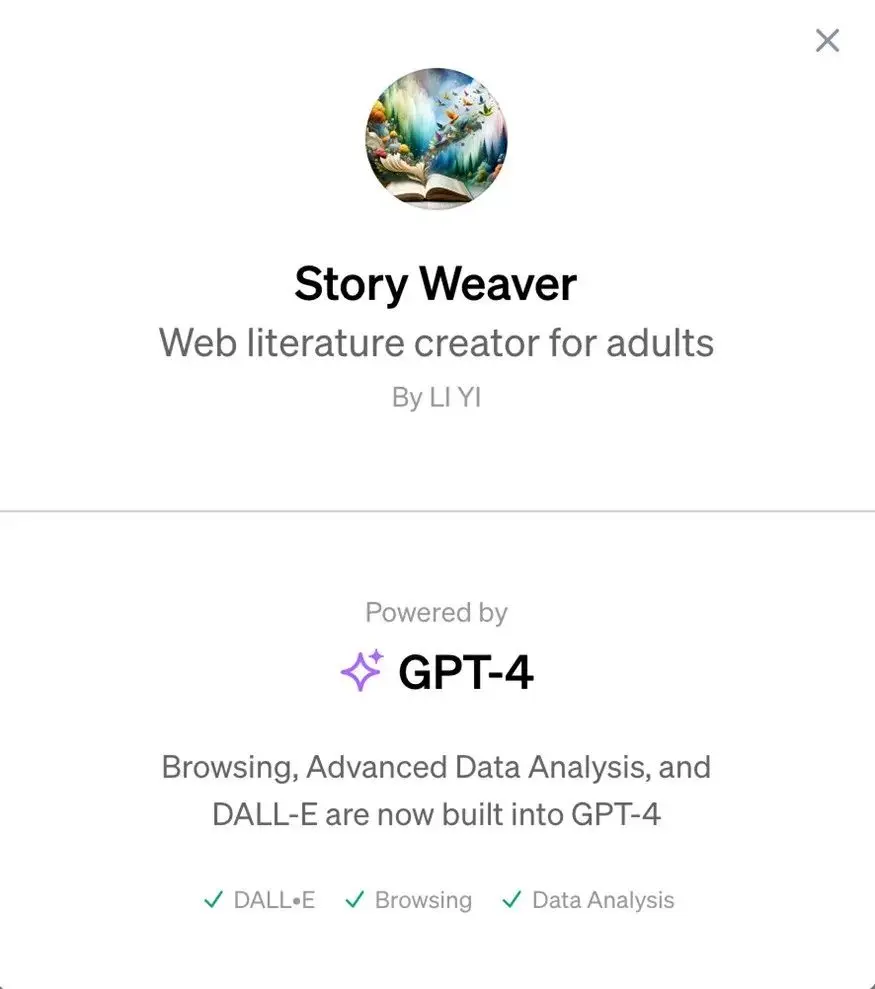 如下图所示,这是我创建的 GPTs —Story Weaver,它是一个私有的GPTs。