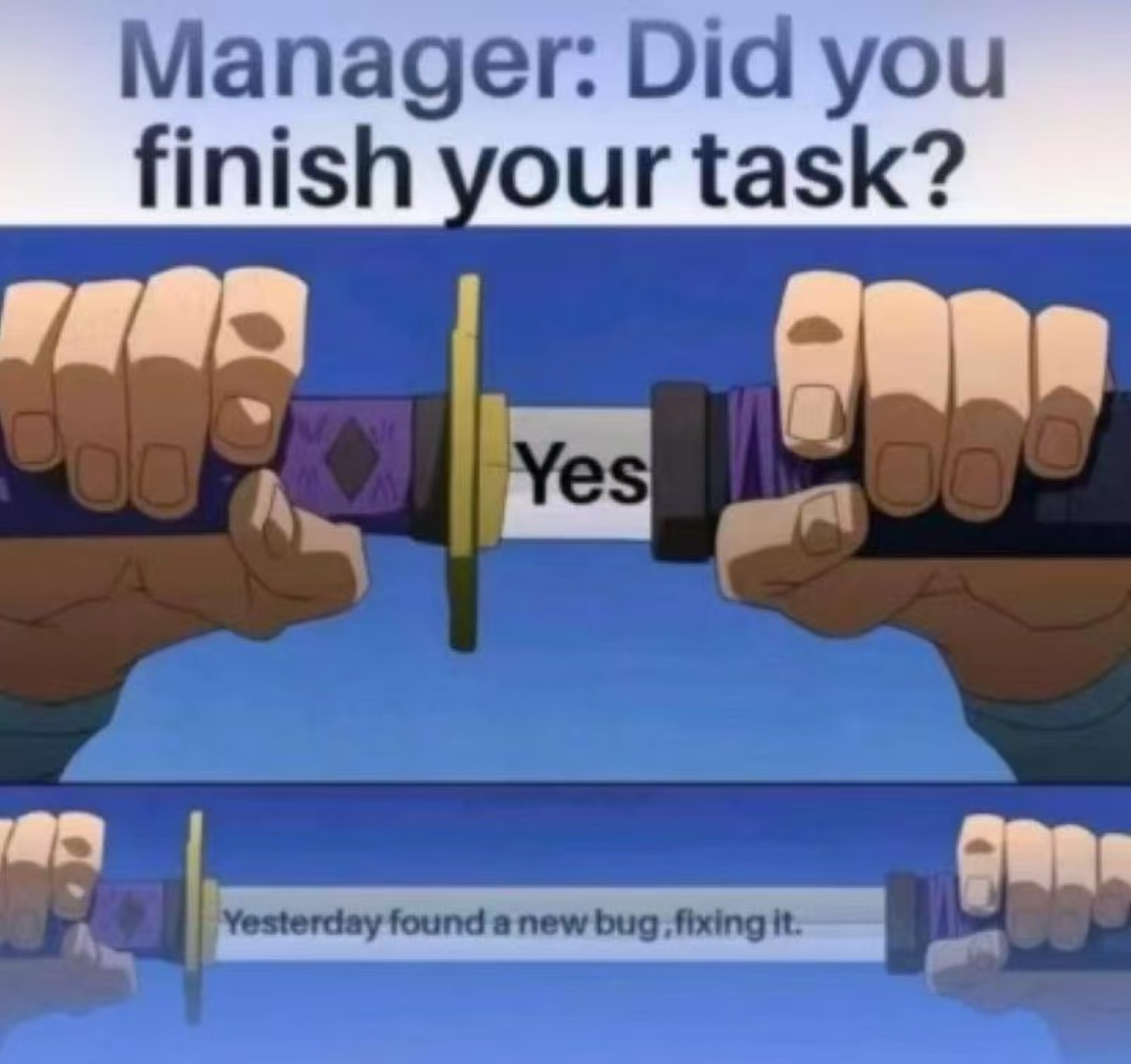 这条定律与第一条的帕金森定律可谓是相得益彰。软件项目几乎总是会延期,即使你已经考虑了缓冲时间。所以如果你用帕金森定律来为紧张的 deadline 辩护,你要么会: