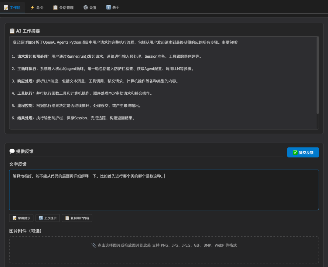 我在反馈框中输入:“能否从代码层面细化,比如每个步骤涉及的具体类和函数?”—— 这一步将单次请求的额度充分利用,避免了重复发起对话的浪费。