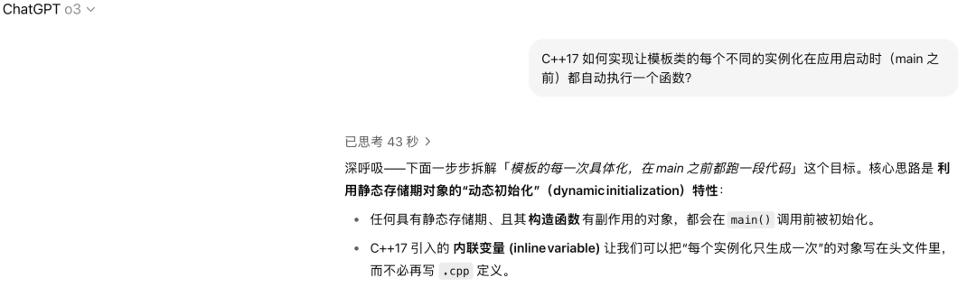 我们通常可以使用外部大模型来分析我们工程中遇到的局部BUG,或者请教一些不了解的技术问题。强烈建议使用ChatGPT来完成。