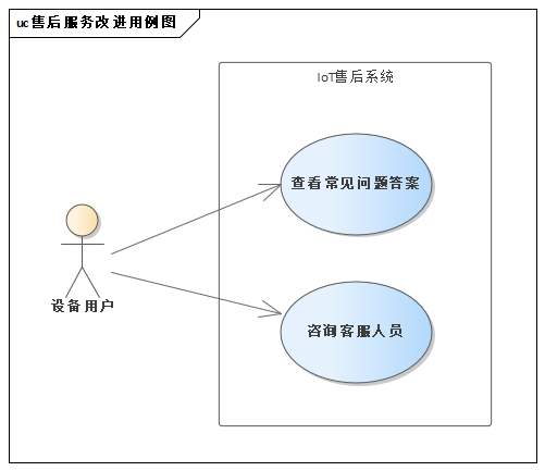 对于我们的 IoT 管控售后系统来说,业务用例就是我们设备的用户来咨询运营问题,并由运营人员解答问题,这个就是售后部门的价值所在,如图所示: