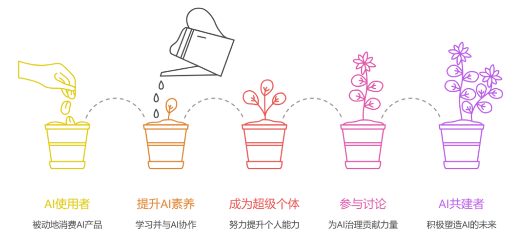这些所有的问题,我们必须坦诚面对,更重要的是我们应该以什么样的心态和姿态来迎接新时代到来。因为我平时做企业AI落地的内训比较多,我发现现在企业员工当中大部分并没有正确摆正学习AI的态度,所以,这里我也郑重呼吁一下:不要只做AI时代的“旁观者”或“消费者”,而要努力让自己从“使用者”成为“共建者”,具体做法上,我们应通过持续学习来提升“AI素养”,学会如何与AI协作完成工作任务。如果上升到社会层面,我们还应积极参与AI主题讨论,为建立负责任、可信赖的AI治理体系贡献自己的智慧。