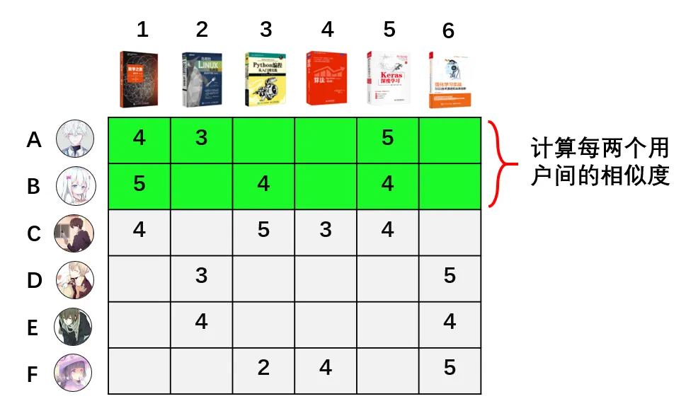 图2:协同过滤概念图解——用户通过相似的评分历史相互连接,系统可以预测用户对未知物品的偏好