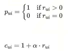 模型设计:论文将每个观测分为偏好pui(0或1)和置信度cui两部分。例如,对于观看时长,可以设定: