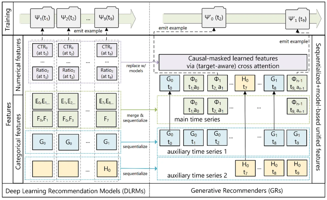 端到端生成成为趋势:快手One-Rec和Meta HSTU都展示了用单一生成模型替代多阶段级联架构的可能性,这能显著简化系统复杂度并降低成本。
