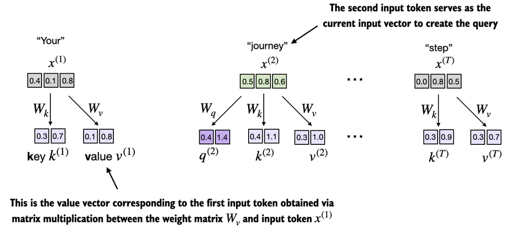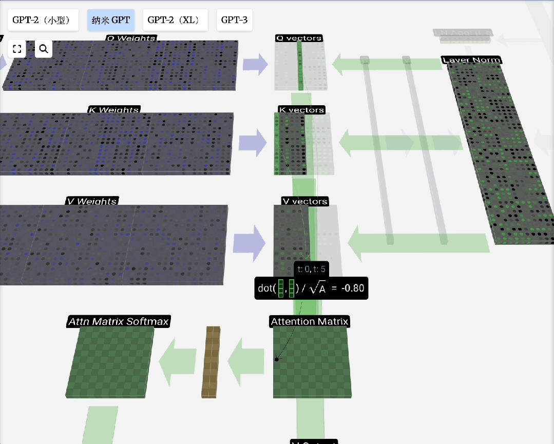 5、接着我们将其他列的向量也计算出来,如此一来,我们将其中一个注意力头的注意力分数算出来了。