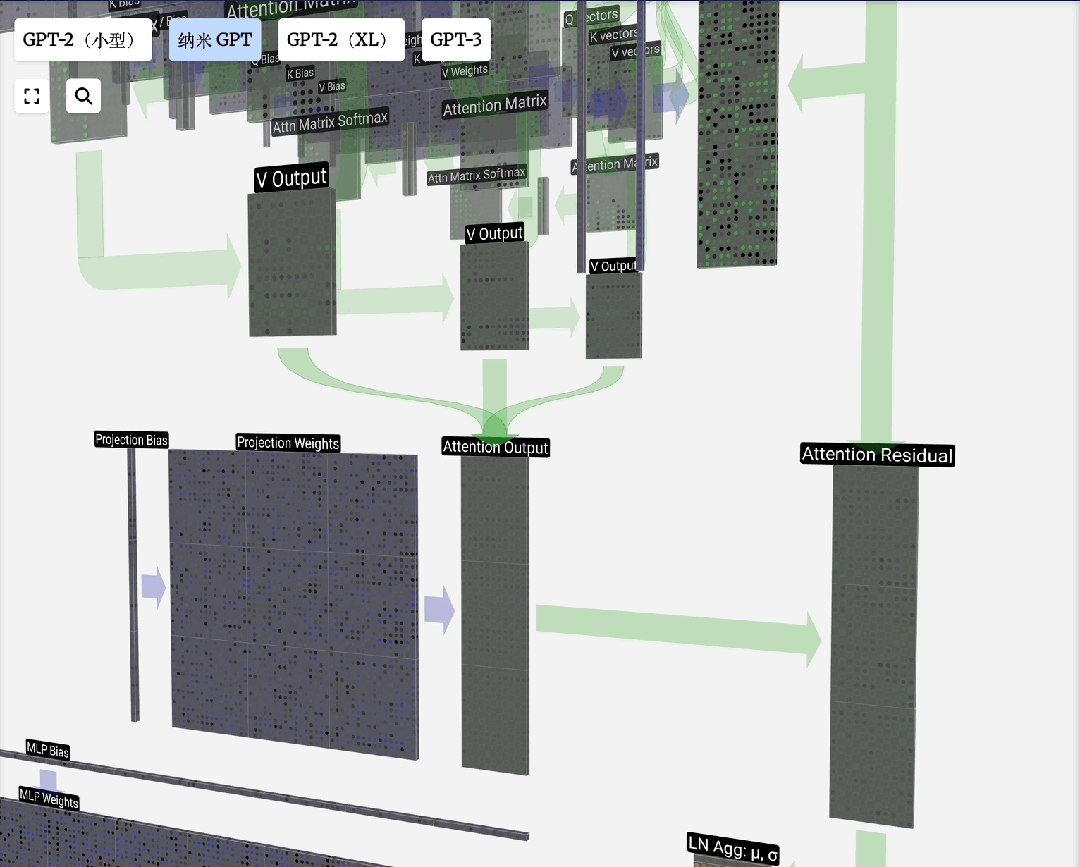 3、然后,通过另一个带偏置的矩阵向量乘法,将向量投影回长度为 C 的维度。与自注意力+投影部分类似,将多层感知器的计算结果逐元素地加到其输入上。