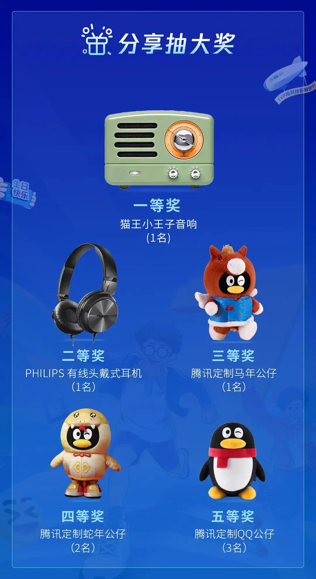 您对腾讯云 TVP 七周年有怎样的生日祝福或寄语,您和 TVP 有怎样难忘的故事?在【腾讯云TVP】公众号原文评论区写下您的祝福或故事,截至 12 月 28 日中午 12:15,评论区留言点赞最高的 27 位粉丝朋友,即可参与好礼抽奖。