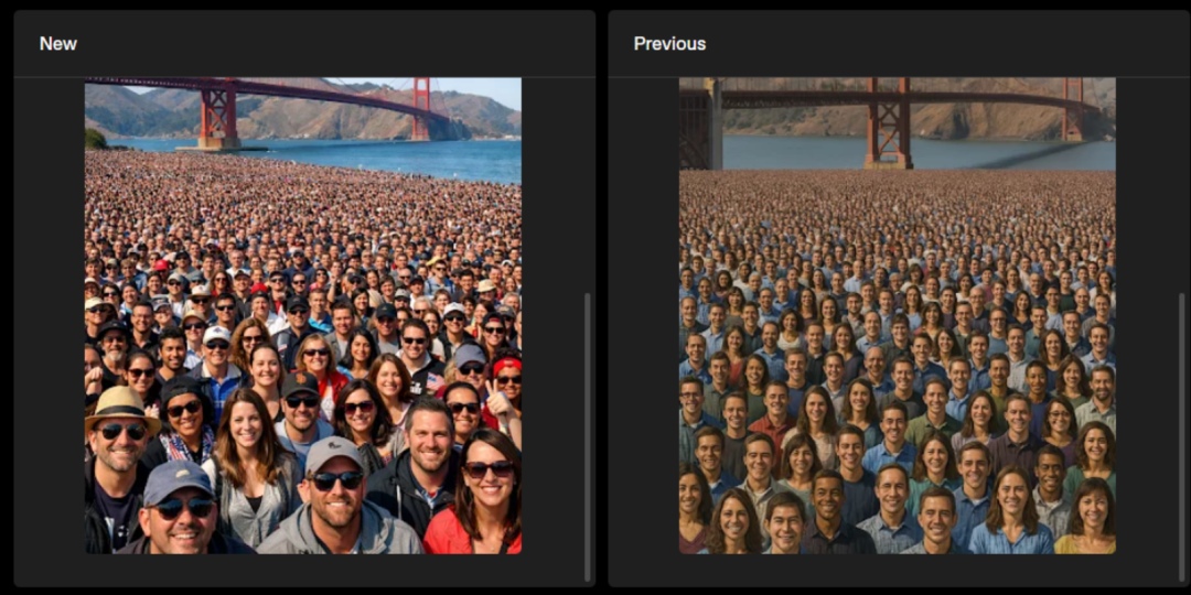 在测试新模型生成“人山人海”的场面的时候,效果提升很大,而且更加逼真和自然。