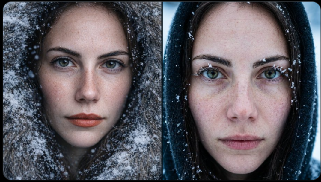 左图GPT VS 右图Nano Banana Pro。看起来两个模型生成的都非常真实,但是Nano Banana Pro生成的雪更加干净。