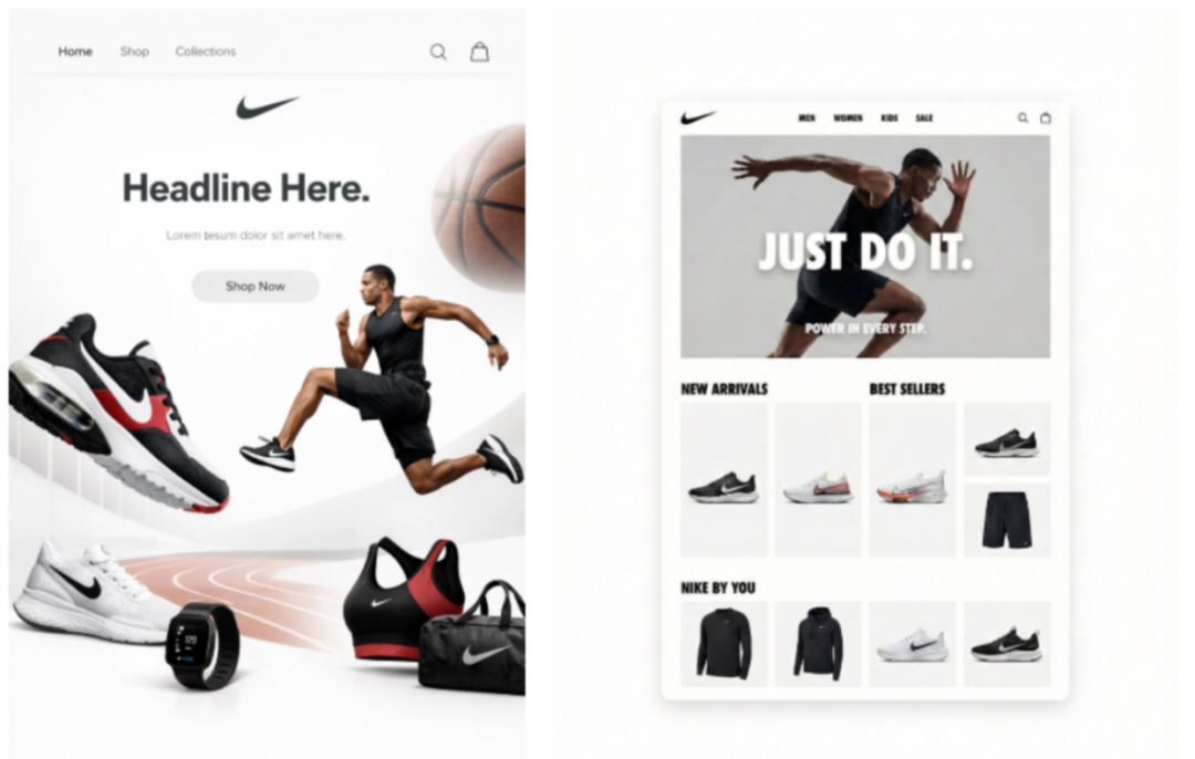 prompt:为耐克打造一个简洁的苹果风格网站,并以4:5宽高比搭配强有力的元素