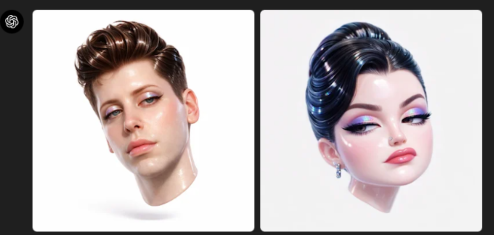 也可以通过变换不同的细节,融合多种元素进行创作,比如把给定的人物图像,让它创造一个超风格化的3D漂浮头部。