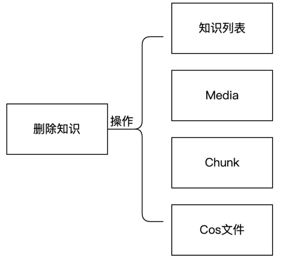 用户的许多单一操作,在后端已演变为一个需要操作多个组件的复杂流程。例如,“删除知识库内容”需要一并清理知识列表、Media、分片、和cos文件。先前的单体架构复杂度逐渐提升,几乎无法拓展。