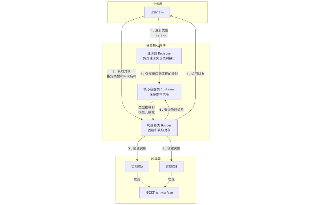 依赖注入将对象创建和使用分离,由容器统一管理生命周期和依赖关系,使用者只需声明需求无需关心创建细节, C++没有统一框架,我们需求聚焦于策略类的依赖注入,要求简单易用且能与trpc框架密切配合,因此需开发一个。