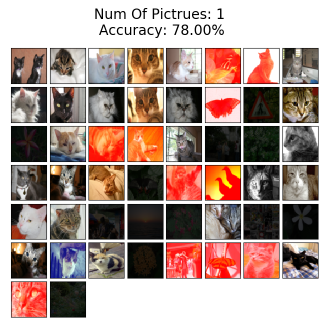 plt.suptitle(u"Num Of Pictrues: %d\n Accuracy: %.2f%%" % (len(train_set_x_orig), accuracy), y=0.92, fontsize=20)