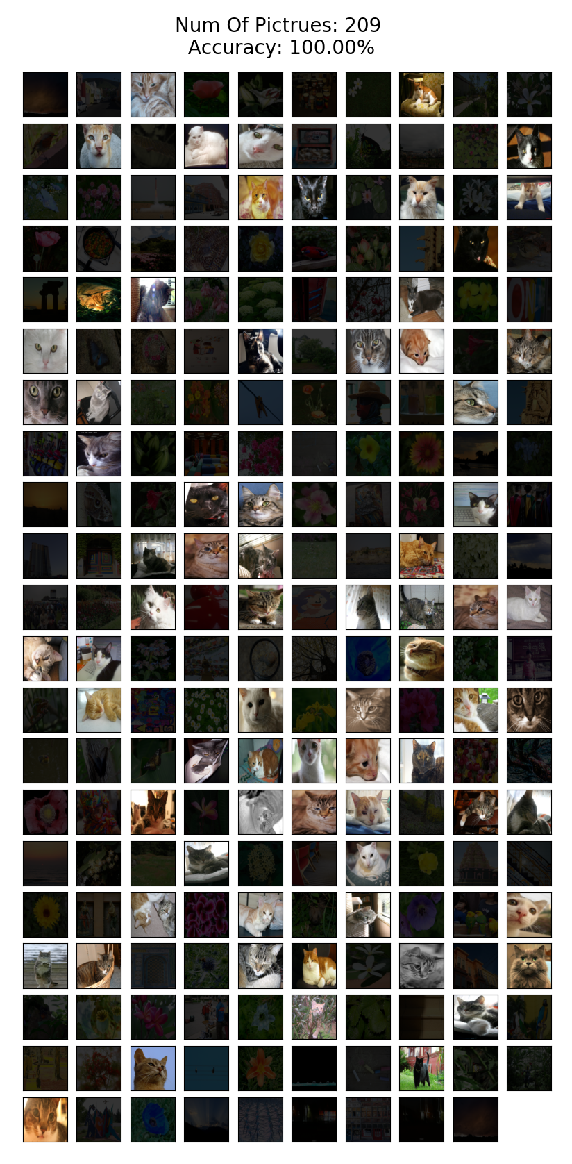 - 还用说,把209张图片的数据扔到神经网络,完成一次迭代,然后训练1万次,可自行尝试迭不同代次数观察效果。