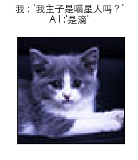 plt.suptitle(u"我:'我主子是喵星人吗?'\nA I :'是滴'", fontproperties = font)
