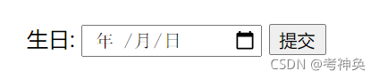 生日 (日期和时间): <input type="datetime-local" name="bdaytime">