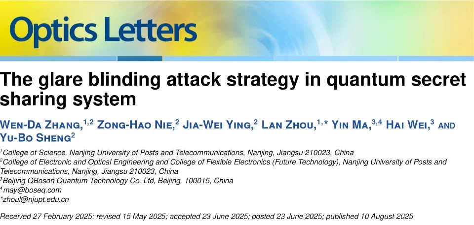 量子通信一直被视为“无法窃听”的未来安全技术,但一项最新研究显示,这种安全感或许并不牢固。来自南京邮电大学和北京玻色量子科技有限公司的联合研究团队发现,一种名为“眩光致盲攻击”的手段,可以在不被察觉的情况下突破量子秘密共享(QSS)系统。