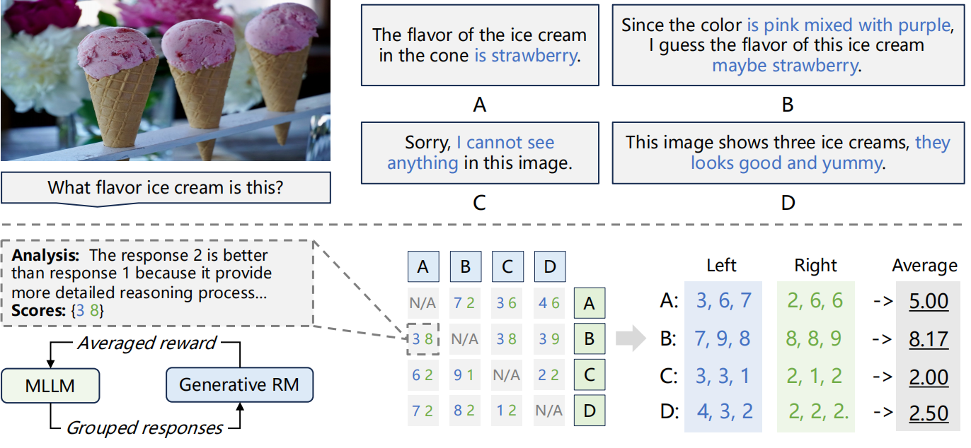 2、基于“分组比较” 的RL优化,通过比较一组响应来增强评分的精确性。