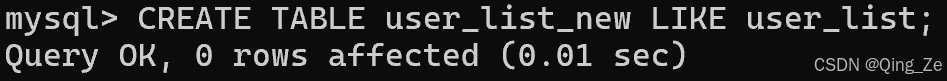 四、复制 user_list 数据表为 user_list_new 表,不复制数据。