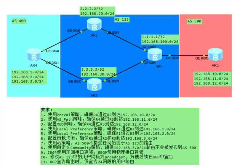 4、使用Local Preference策略,确保R1通过R2到达192.168.1.0/24