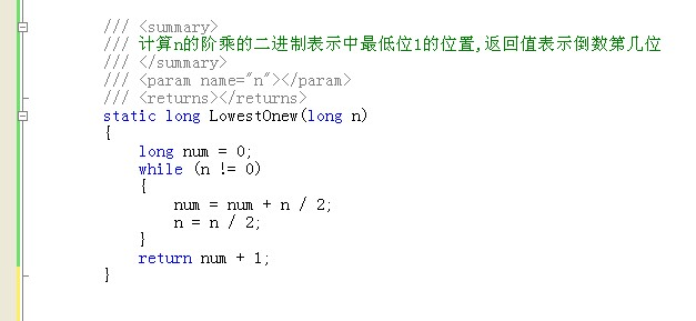 - 求N!的二进制表示中最低位1的位置。