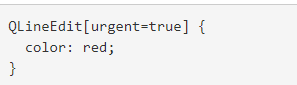 会匹配QLineEdit中的属性urgent=true的实例。从而设置color属性为红色。(当然若是匹配QLineEdit中自带的默认属性也是可以的)