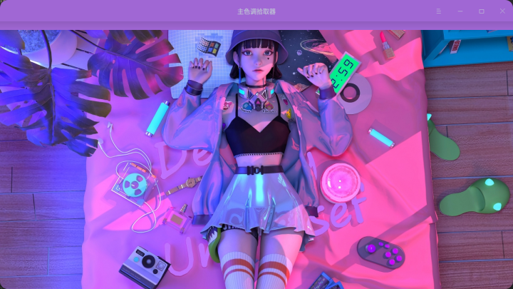 该程序先获取图片中平均色,再将窗口颜色设置为平均色,从而达到沉浸的效果。